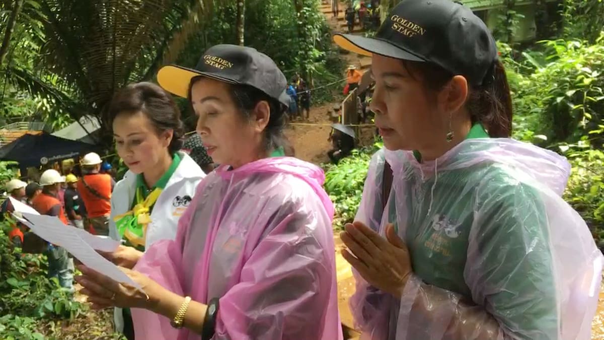 Lluvias torrenciales entorpecían el miércoles la labor de los socorristas para alcanzar a un grupo de 12 niños y su entrenador de fútbol atrapados desde el sábado en una cueva inundada en Tailandia, mientras monjes budistas y grupos cristianos se acercaron al lugar para rezar por los menores.