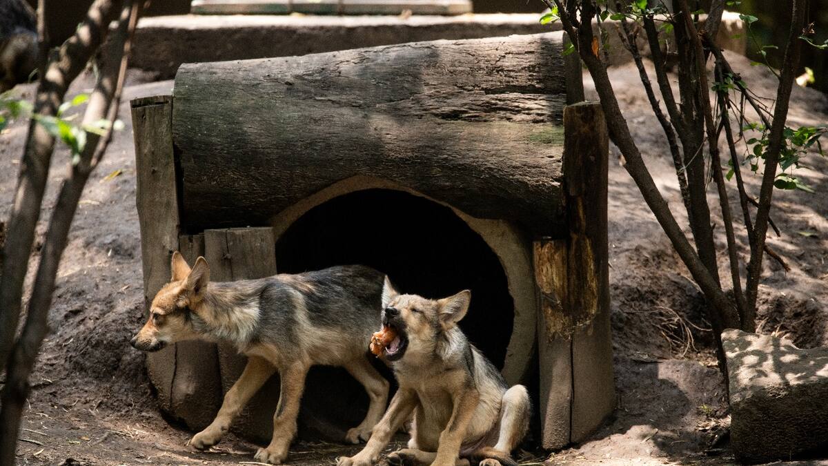 Sin testigos humanos, los lobeznos -seis machos y dos hembras- nacieron el 17 de abril al interior de una madriguera en un área arbolada del zoológico 'Los Coyotes', haciendo crecer la familia a 17 miembros.