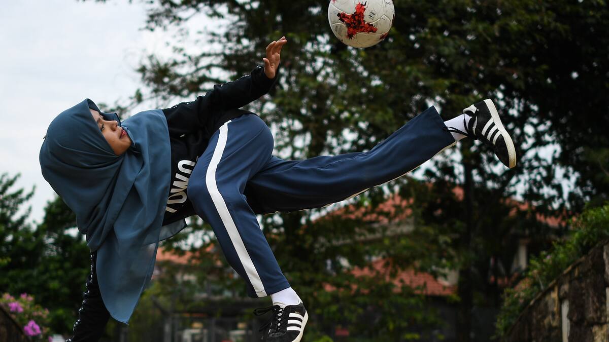 Una estudiante de 18 años aficionada al fútbol ‘freestyle’, que practica con su velo islámico, causa sensación en Malasia, país del sudeste asiático de mayoría musulmana, donde el deporte es un dominio copado prácticamente en su totalidad por los hombres.