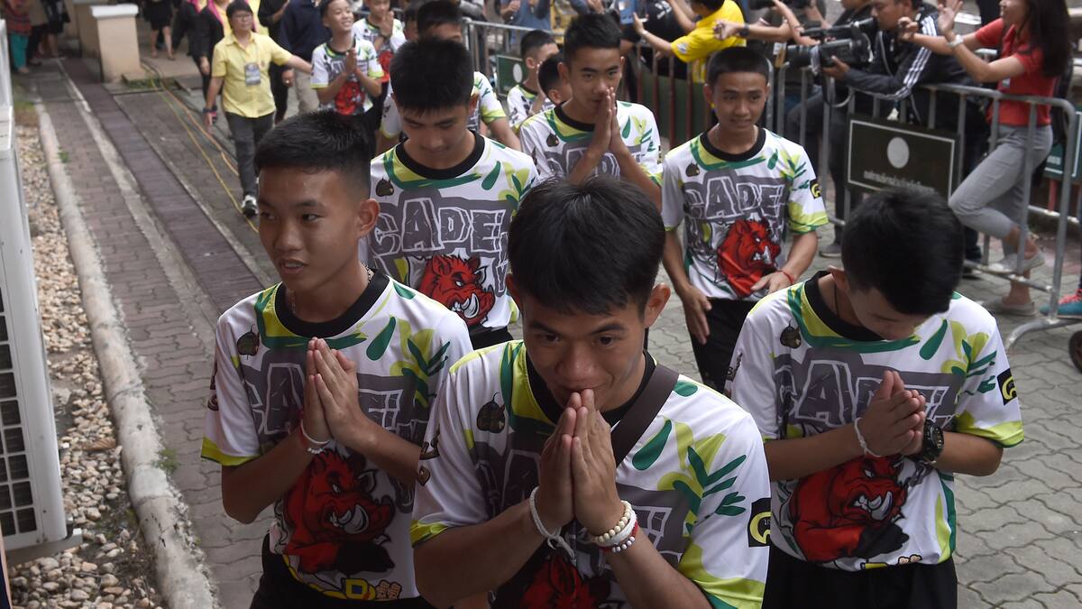Los llamados ‘Jabalíes salvajes’ como es el nombre de su equipo de fútbol y su entrenador, salieron este miércoles del hospital antes de comparecer ante los medios.