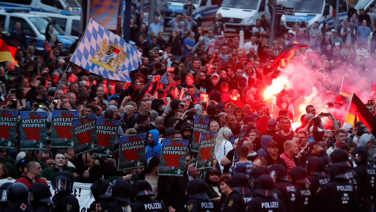 Militantes de extrema derecha participaron el domingo en 'persecuciones colectivas' contra migrantes en la localidad de Chemnitz, unos actos violentos que se repitieron el lunes en otra manifestación en la misma ciudad, en la que participaron unas 6.000 personas y en la que varios manifestantes hicieron el saludo nazi.