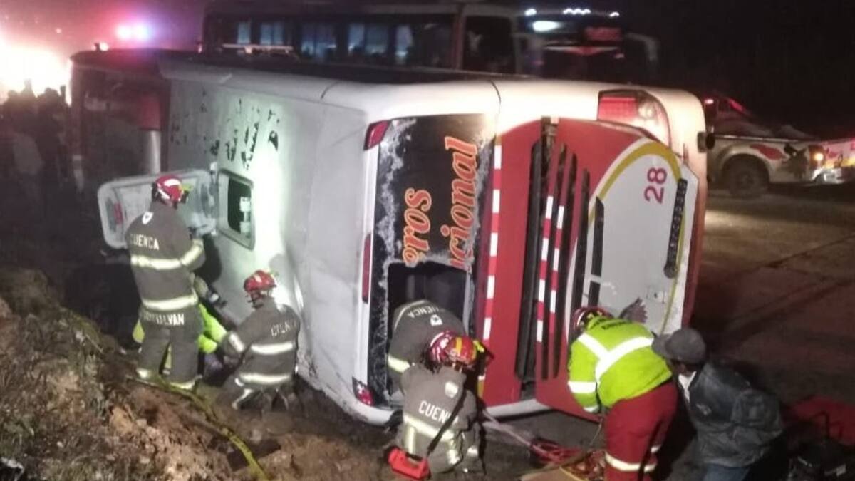 El accidente se produjo a 21 km al sur de Cuenca, agregó.