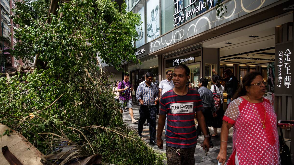 Los operarios comenzaron el lunes una gran limpieza en Hong Kong para retirar árboles y restos de todo tipo, un día después del paso del tifón Mangkhut que dejó decenas de muertos en Filipinas.