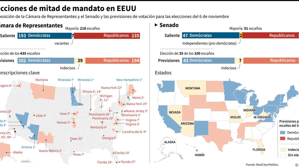 Los estadounidenses están convocados a las urnas el martes para las elecciones de medio mandato, en las que se renovará el Congreso una serie de cargos locales, y que constituyen asimismo una especie de referéndum sobre la presidencia de Donald Trump, dos años antes de las presidenciales.