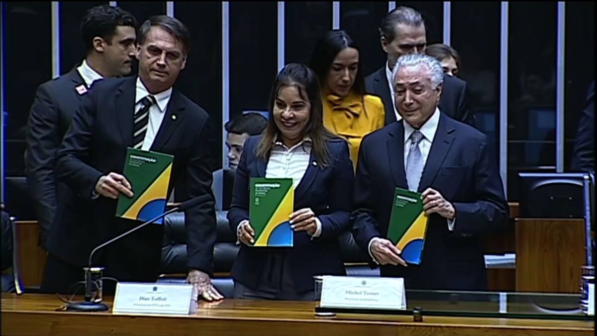 El presidente electo de Brasil, Jair Bolsonaro, invocó el martes a Dios y la Constitución y recibió mensajes sutiles a favor de la tolerancia durante una sesión solemne en el Congreso por el 30 aniversario de la Carta Magna de 1988.