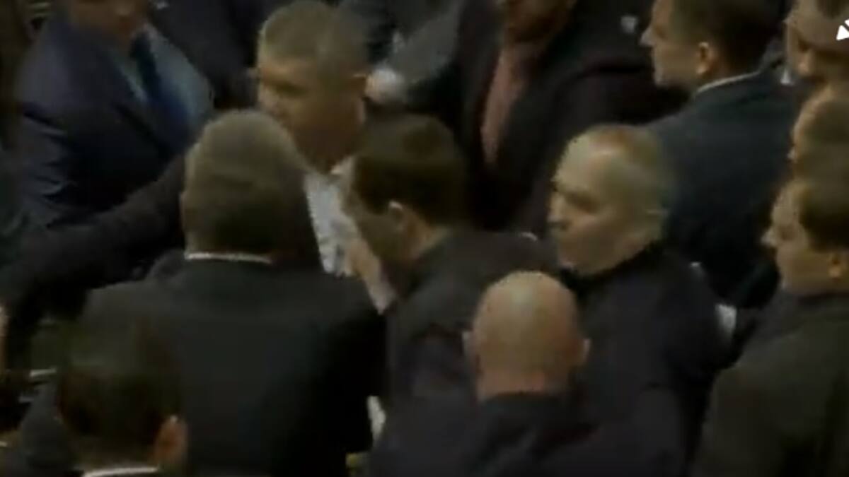 Una pelea estalló entre los miembros del parlamento ucraniano después de que un miembro del partido acusara a otro de trabajar para el presidente ruso Vladimir Putin.