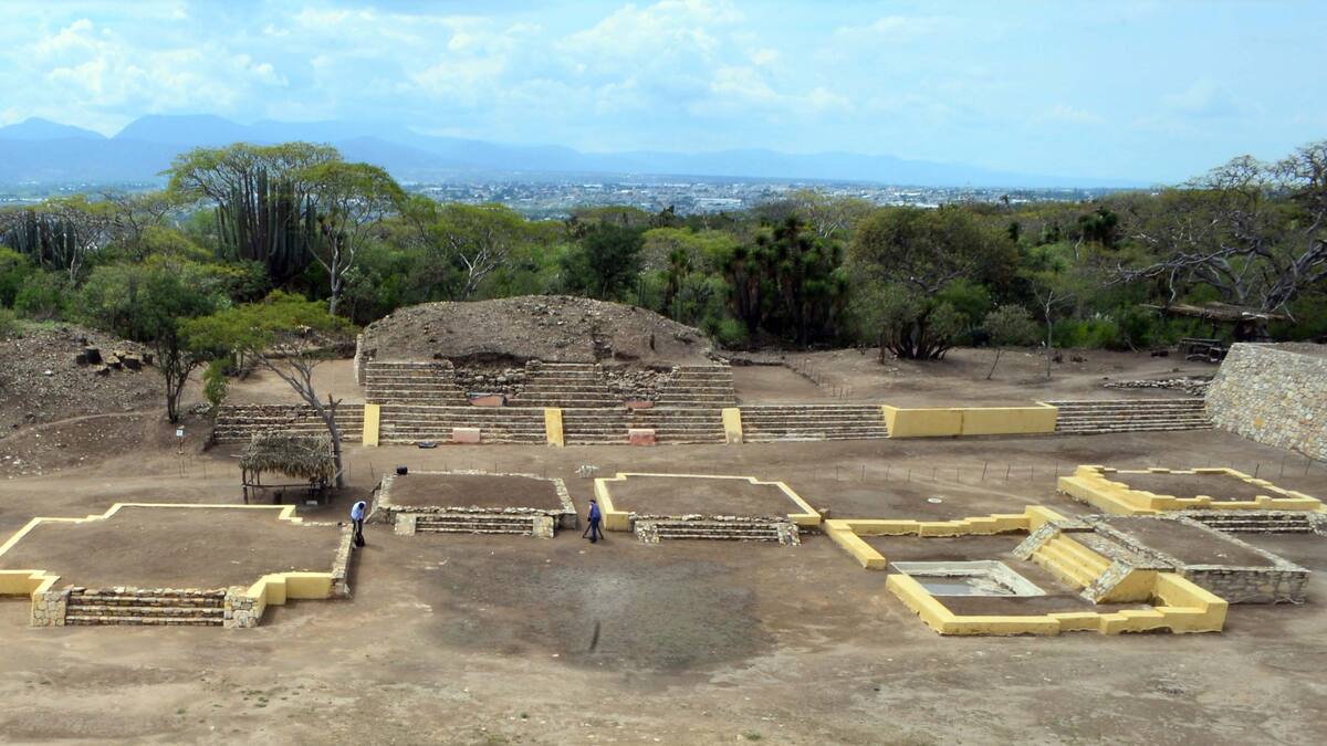 El recinto de 12 metros de largo por 3,5 de altura está compuesto por dos altares de sacrificio, tres esculturas en piedra volcánica y diversos elementos arquitectónicos localizados en un basamento piramidal de la Zona Arqueológica de Ndachjian-Tehuacán, en el céntrico estado de Puebla.