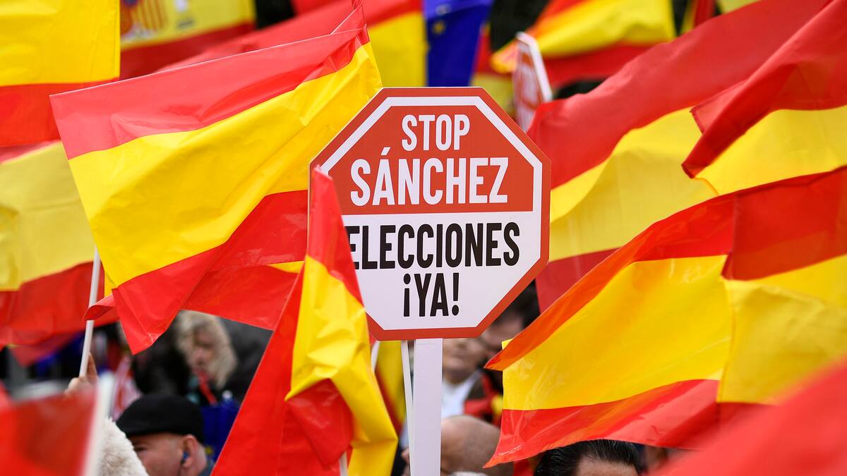 Decenas de miles de personas se manifestaron este domingo en Madrid contra Pedro Sánchez, al que acusan de "traición" a España por dialogar con los separatistas catalanes.