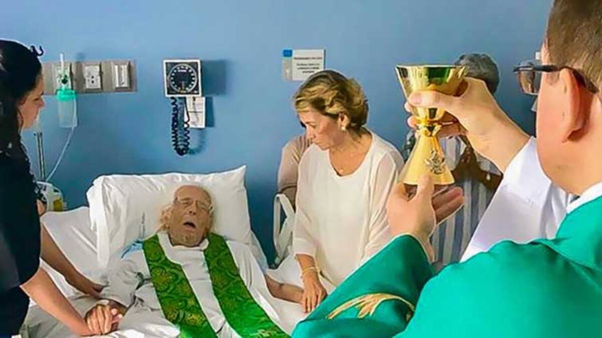 La Nunciatura divulgó en las redes sociales una foto del padre Cardenal en su lecho de enfermo, con una estola verde, símbolo de lu recuperación de su estado clerical.