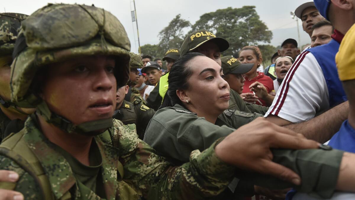Las deserciones se produjeron en medio de la jornada en que la coalición de países que no reconocen a Maduro intentó llevar 600 toneladas de ayuda humanitaria a través de los puentes del Norte de Santander, pero fue infructuoso, pues los uniformados venezolanos impidieron el paso, dispararon gases lacrimógenos, balas de goma, e incluso incineraron un camión con 20 toneladas de alimentos y medicinas.