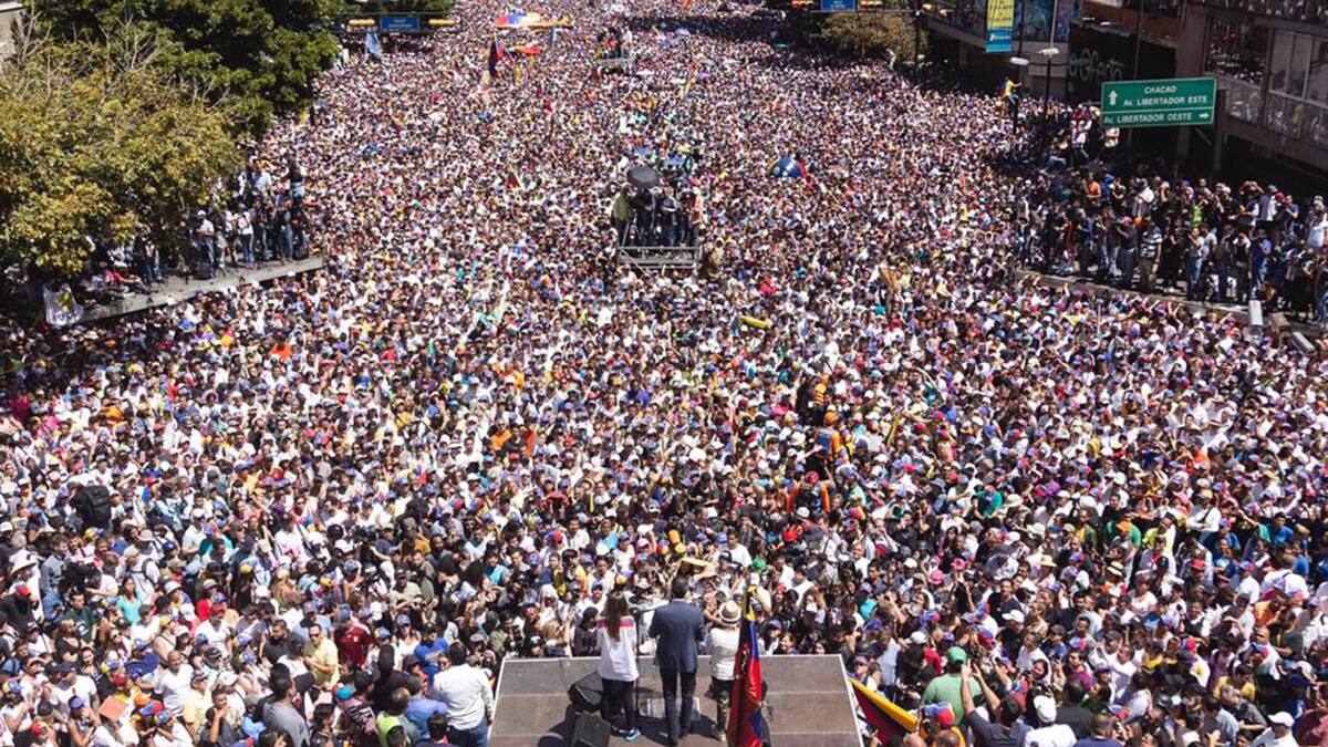 Las marchas iniciaron hacia el mediodía en todo el país, donde este lunes es feriado de carnaval. Guaidó salió en secreto hace diez días, según él, ayudado por militares venezolanos en la frontera con Colombia.