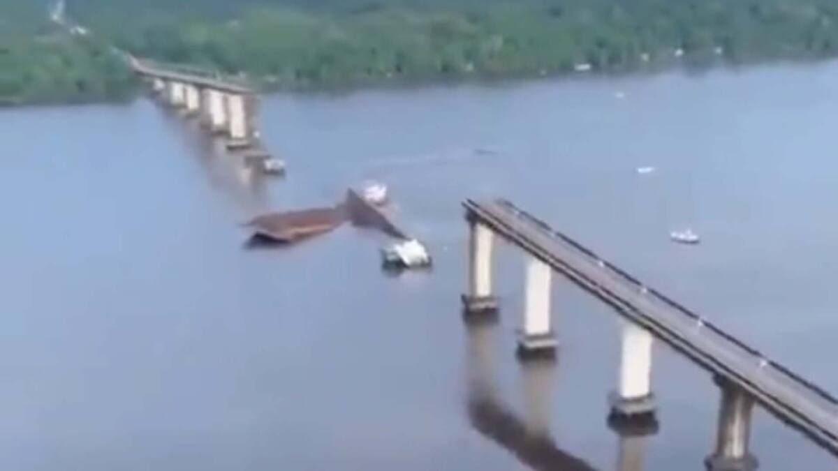 Tras sobrevolar la zona, el gobernador del estado, Helder Barbalho, informó en Twitter de que el colapso fue producto de la colisión de una embarcación que transportaba residuos con uno de los pilares del puente.
