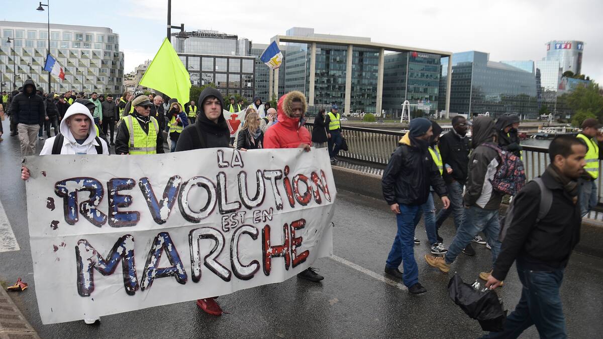 En la capital francesa, varios cientos de manifestantes -convocados por la CGT y los 'chalecos amarillos'- tomaron por la mañana el bulevar Montparnasse para dar una 'respuesta general' al gobierno.