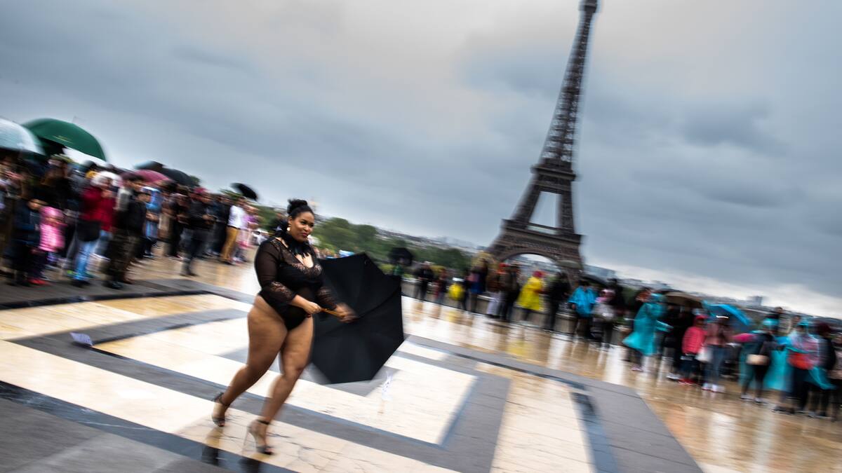 'Mi cuerpo es hermoso'. Alrededor de cuarenta modelos gorditas desfilaron el domingo con atuendos ligeros y sexy frente a la Torre Eiffel, para alentar a las mujeres a enfrentarse a la dictadura de modistas.