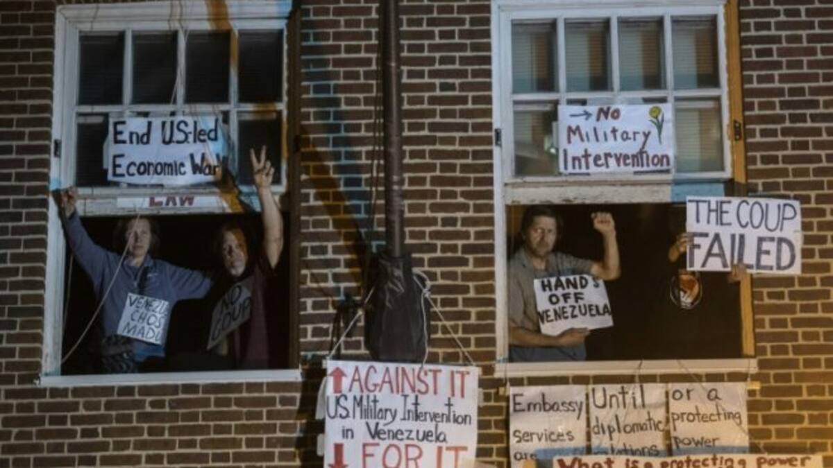 Los activistas estadounidenses favorables al gobierno de Nicolás Maduro que fueron desalojados de la embajada de Venezuela en Washington enfrentan hasta un año de cárcel, pero fueron liberados este viernes tras comparecer ante un juez de distrito.