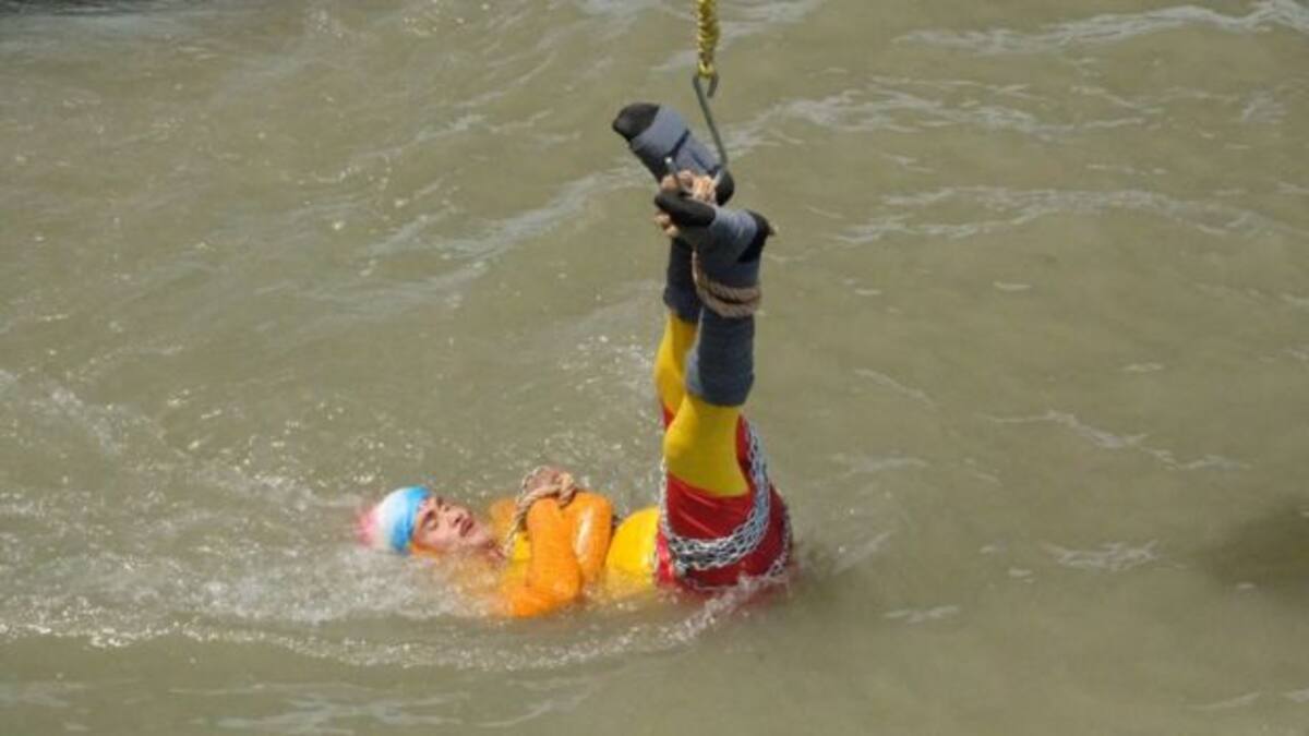 Chanchal Lahiri, conocido por su nombre artístico 'Jadugar Mandrake' (El mago Mandrake), se lanzó al río desde una grúa frente a miembros de su familia, los medios de comunicación y la policía estaban en las orillas.