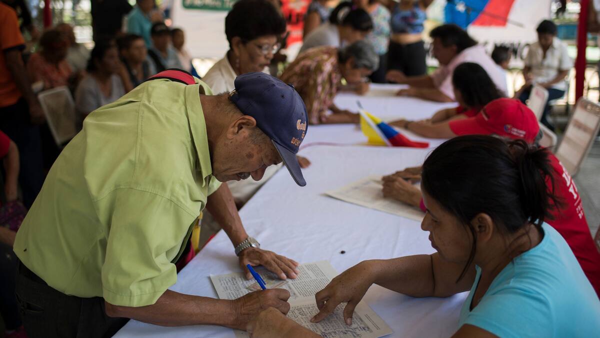 La colecta se realizó en las céntricas plazas Bolívar de varias ciudades del país, incluida la de la capital Caracas, donde centenares de militantes hicieron fila para estampar su rúbrica.