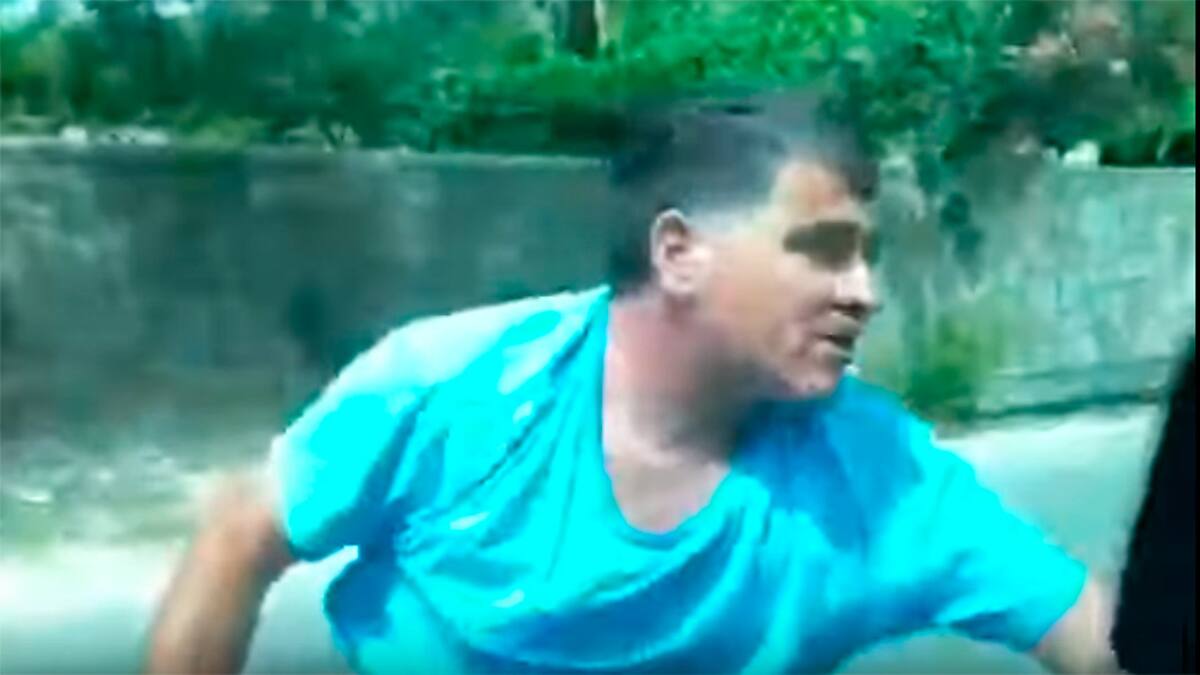 En las imágenes grabadas por los integrantes de la familia se puede ver cuando, con el auto en movimiento, el administrador del restaurante golpea el vidrio con una mano, mientras se sostiene con la otra.