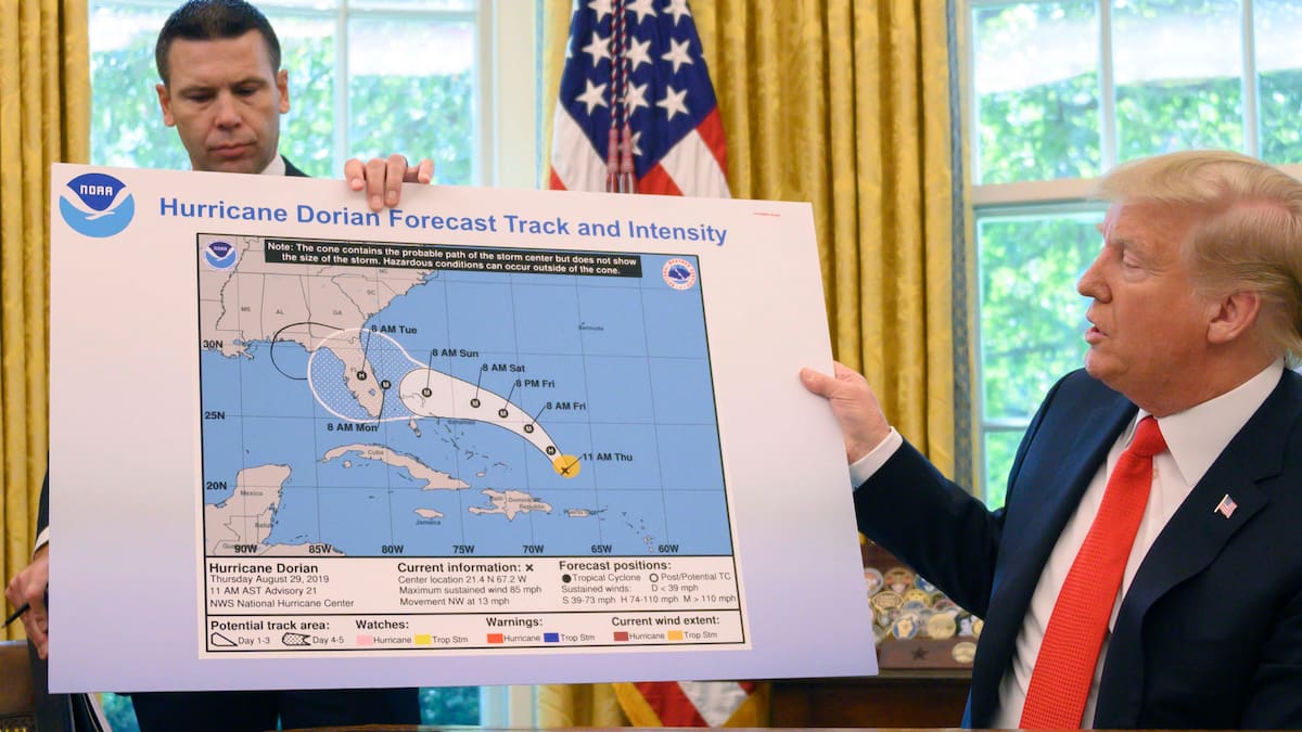 En la Oficina Oval, Trump mostró un mapa con un pronóstico desactualizado de la trayectoria de Dorian, que predecía que la tormenta pasaría por Florida en lugar de subir por la costa.