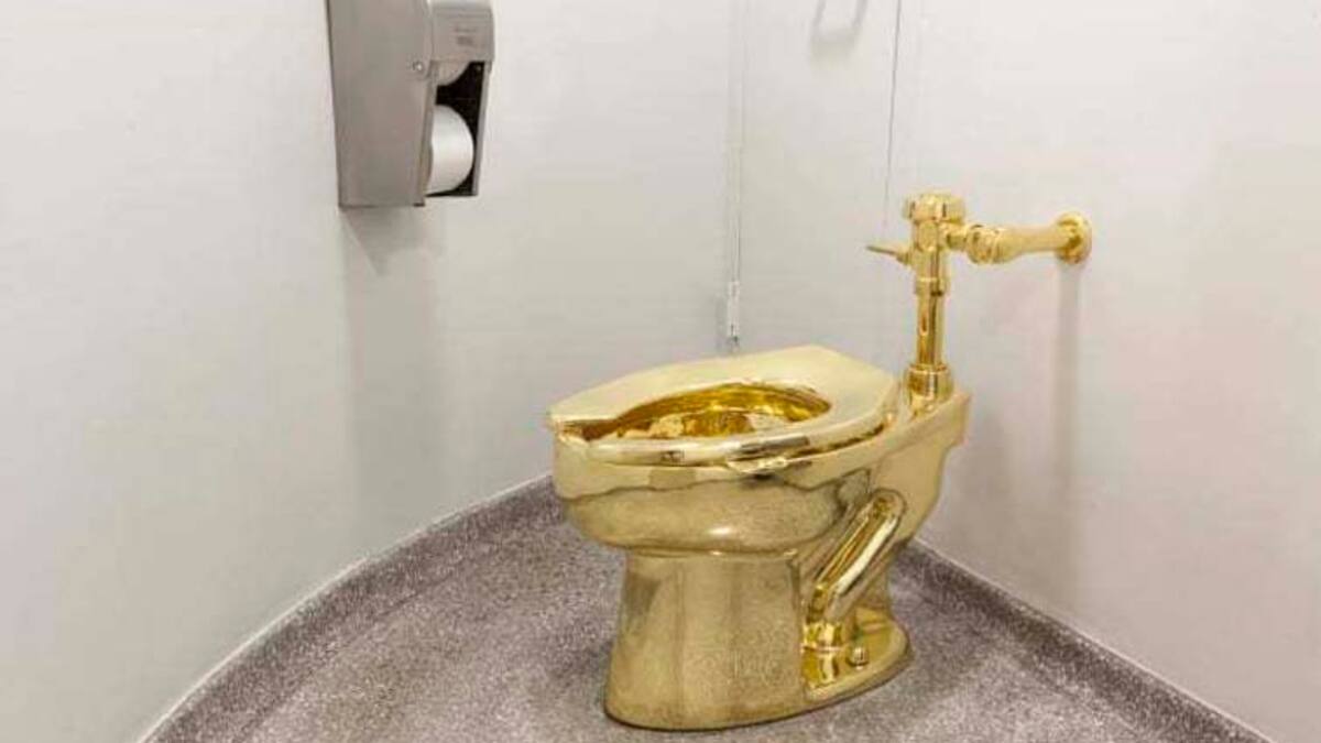La pieza, que se usa como un inodoro normal, es obra del artista italiano Maurizio Cattelan y tiene por título 'América'. Fue expuesta una vez en el museo Guggenheim de Nueva York y prestada al presidente estadounidense Donald Trump.