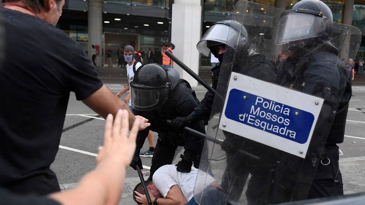 Según un periodista de la AFP, los agentes cargaron en repetidas ocasiones contra los manifestantes que, lanzando piedras y papeleras, intentaban romper el cordón policial en la entrada del aeropuerto de la capital catalana, el segundo más grande de España.