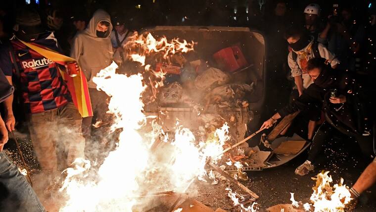 Mientras Barcelona mostraba las cicatrices de una segunda noche de disturbios, con vehículos calcinados en algunas calles, el gobierno y autoridades locales informaban de cortes de carreteras por protestas o neumáticos en llamas en distintos puntos de Cataluña.