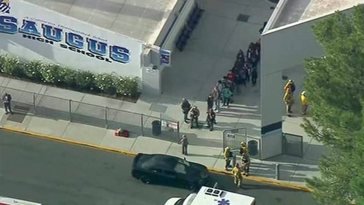 Varias patrullas de policías y ambulancias se trasladaron hasta la secundaria Saugus en Santa Clarita, 65 km al norte de Los Ángeles, tras un llamado de emergencia.