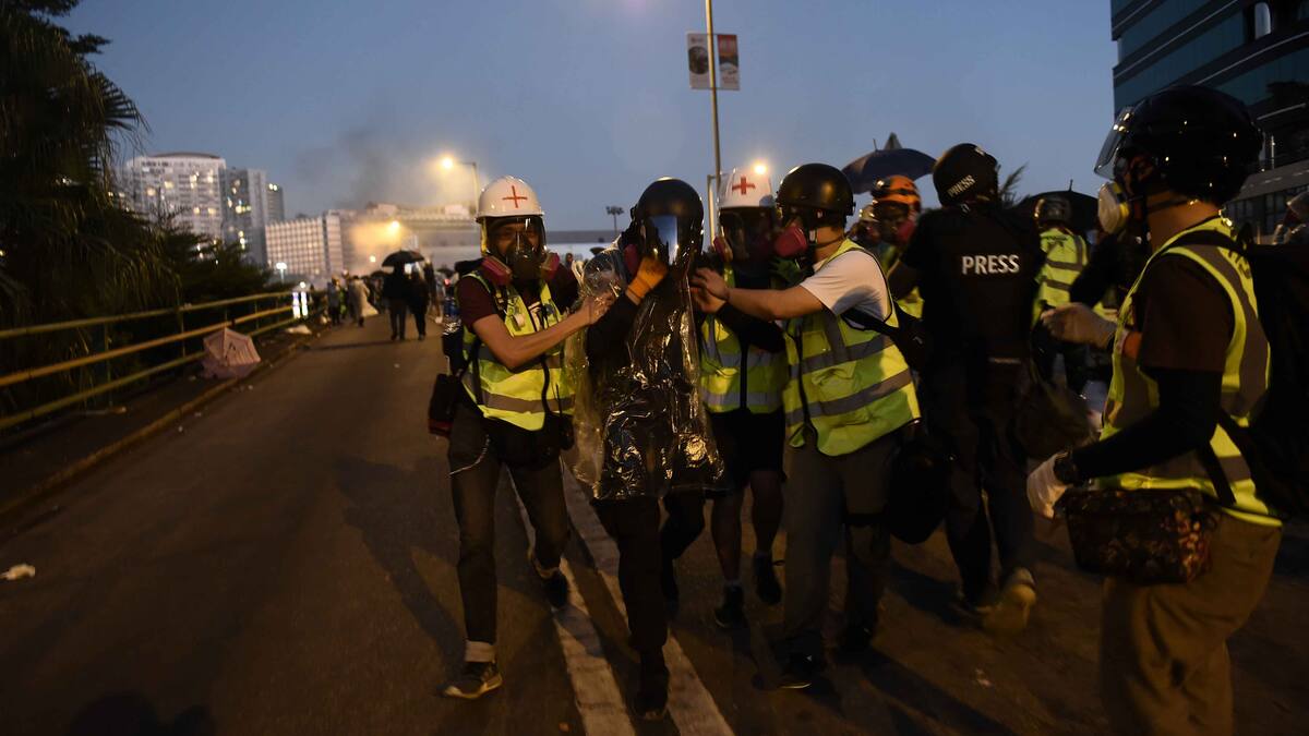Un policía de Hong Kong resultó herido este domingo en la pantorrilla por una flecha disparada por un manifestante durante enfrentamientos cerca de un campus en la zona de Kowloon, convertida en el principal frente de las protestas prodemocracia en esta excolonia británica.