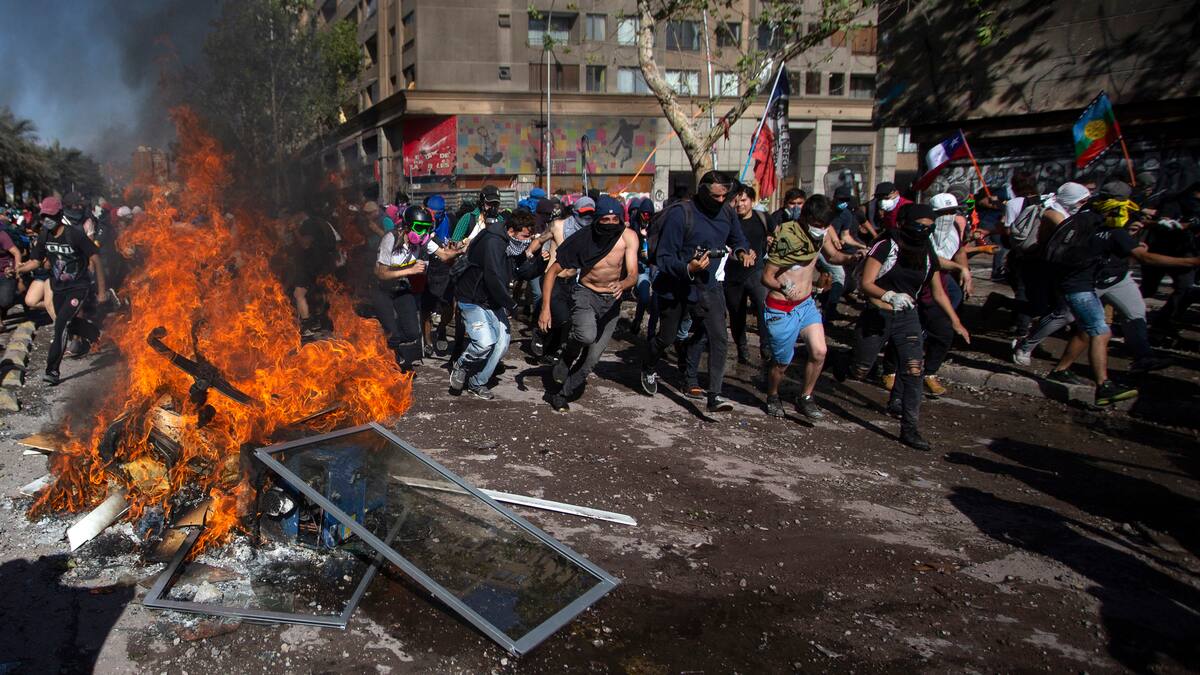 Más al sur, en Concepción, una masiva manifestación -congregada en medio de la huelga de dos días llamada por el principal sindicato de Chile (CUT)- terminó con incidentes violentos entre encapuchados y la Policía, las mismas escenas que hace más de un mes se repiten cada día a lo largo del país.