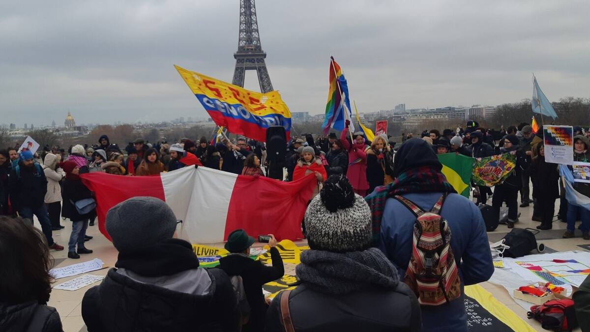Desde la ciudad luz, los cacerolazos se escucharon al unísono mientras los manifestantes portaban banderas de sus países para exigir nuevas políticas de gobierno.