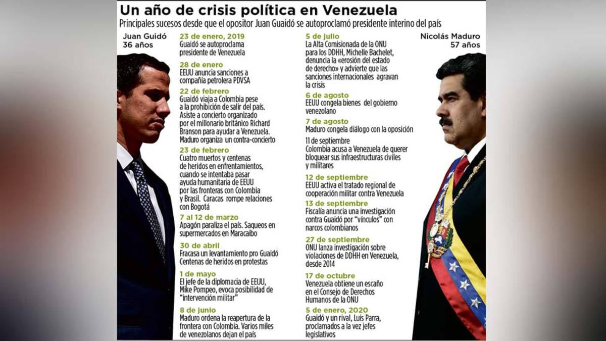 La ruptura institucional se profundiza en Venezuela. Juan Guaidó sigue reivindicando su condición de jefe del Parlamento y presidente encargado con amplio apoyo internacional, mientras un diputado rival fue proclamado líder legislativo y Nicolás Maduro mantiene el control del poder.