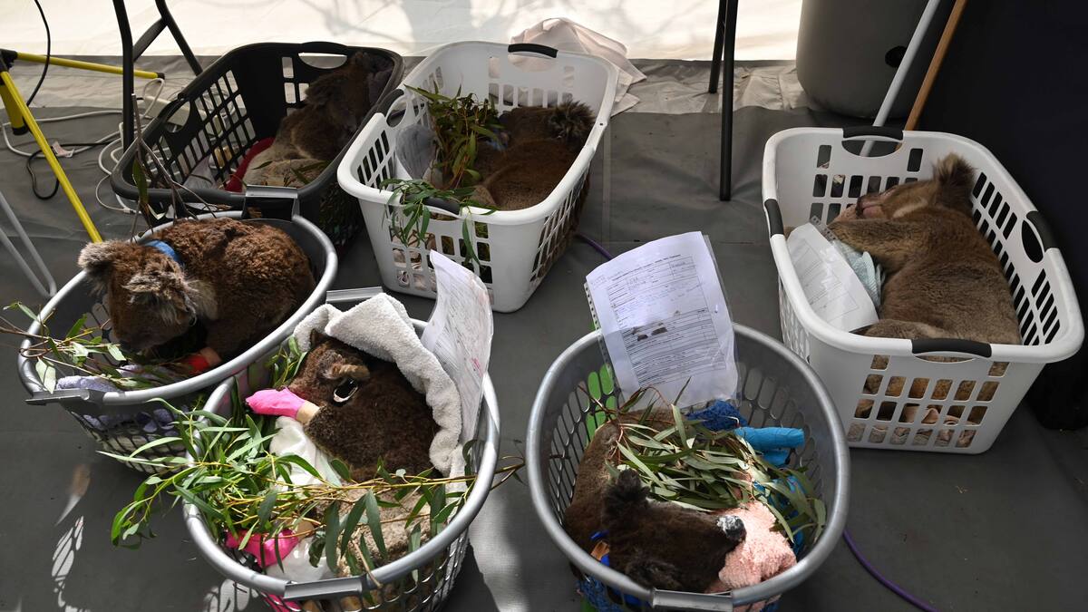 Decenas de koalas heridos por los incendios que devastan el sudeste de Australia, llegan a diario al improvisado hospital de animales, en el parque natural de la isla Canguro, en el sur del país, muchos de ellos aferrados al cuello de sus cuidadores.
