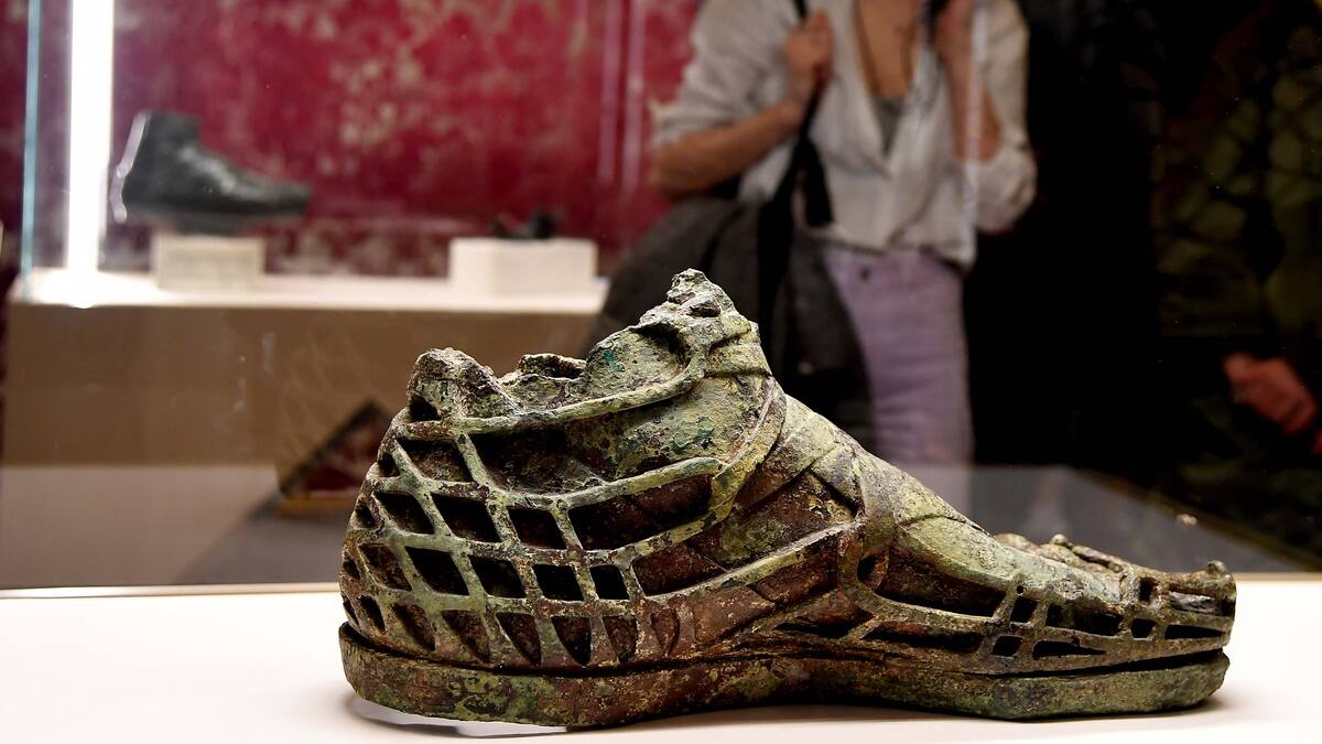 Los zapatos griegos allanaron el camino para el nacimiento de las 'cáligas', que formaban parte del uniforme del soldado romano. Algunos modelos auténticos, con el cuero aún intacto, también se exhiben.