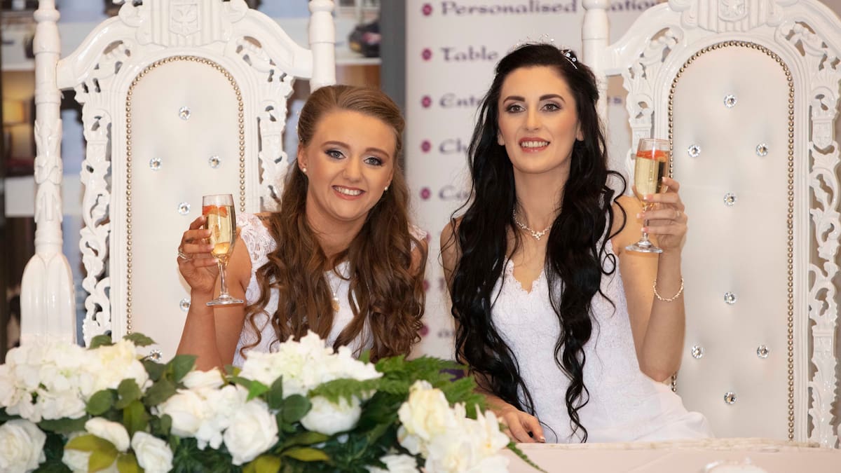 Robyn Peoples, de 26 años, y Sharni Edwards, de 27, se casaron en una ceremonia por la tarde en Carrickfergus, cerca de la capital provincial Belfast, después de que la nueva legislación entrara en vigor el lunes.
