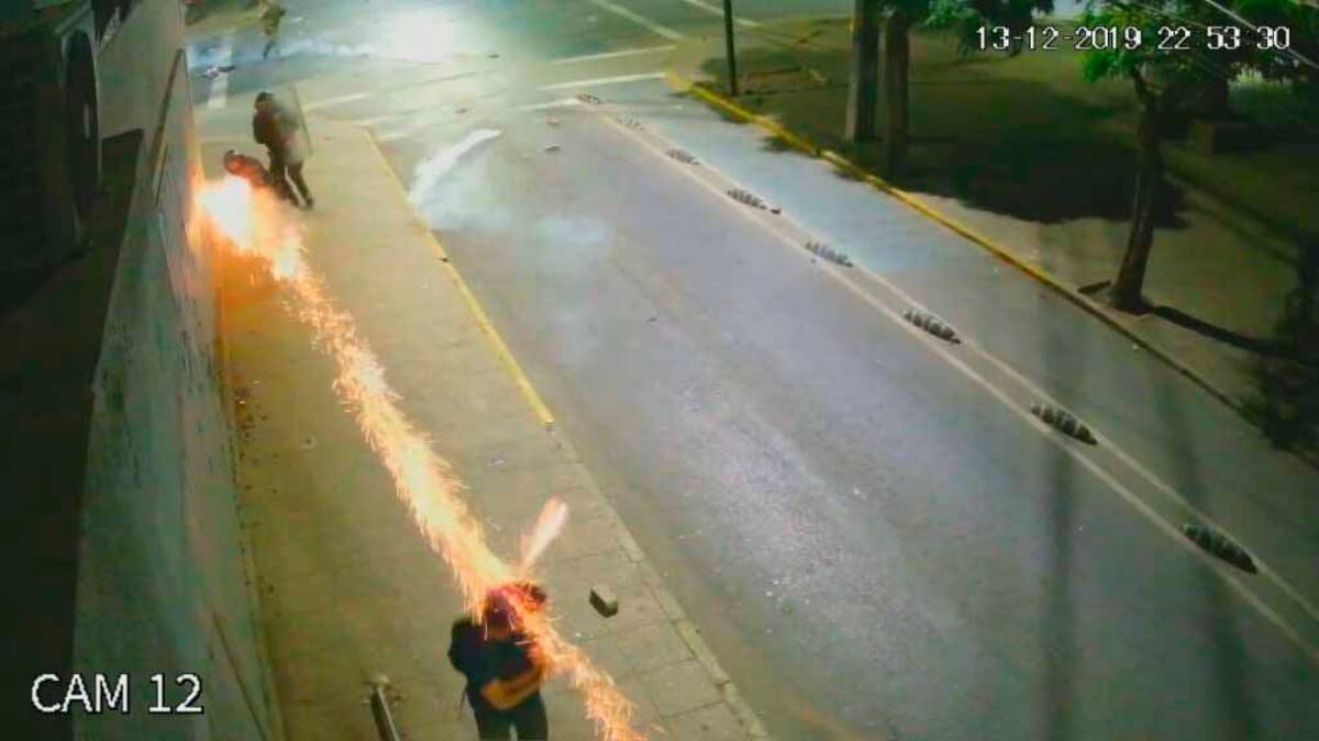 El suceso fue grabado por una cámara de seguridad que sirvió como prueba para la Fiscalía para verificar que el joven se retiraba del lugar caminando en sentido opuesto al policía, de espaldas y con sus brazos cruzados.