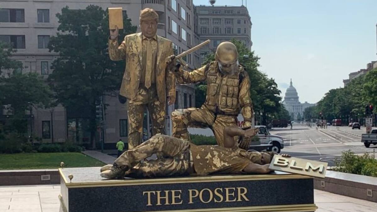 La estatua busca recrear, según la publicación, el episodio en el que la Policía desalojó a los manifestantes que permanecían en el parque Lafayette Square, frente a la Casa Blanca, para permitir que Trump atravesara caminando el lugar hasta llegar a una iglesia cercana donde posó con una biblia en la mano.