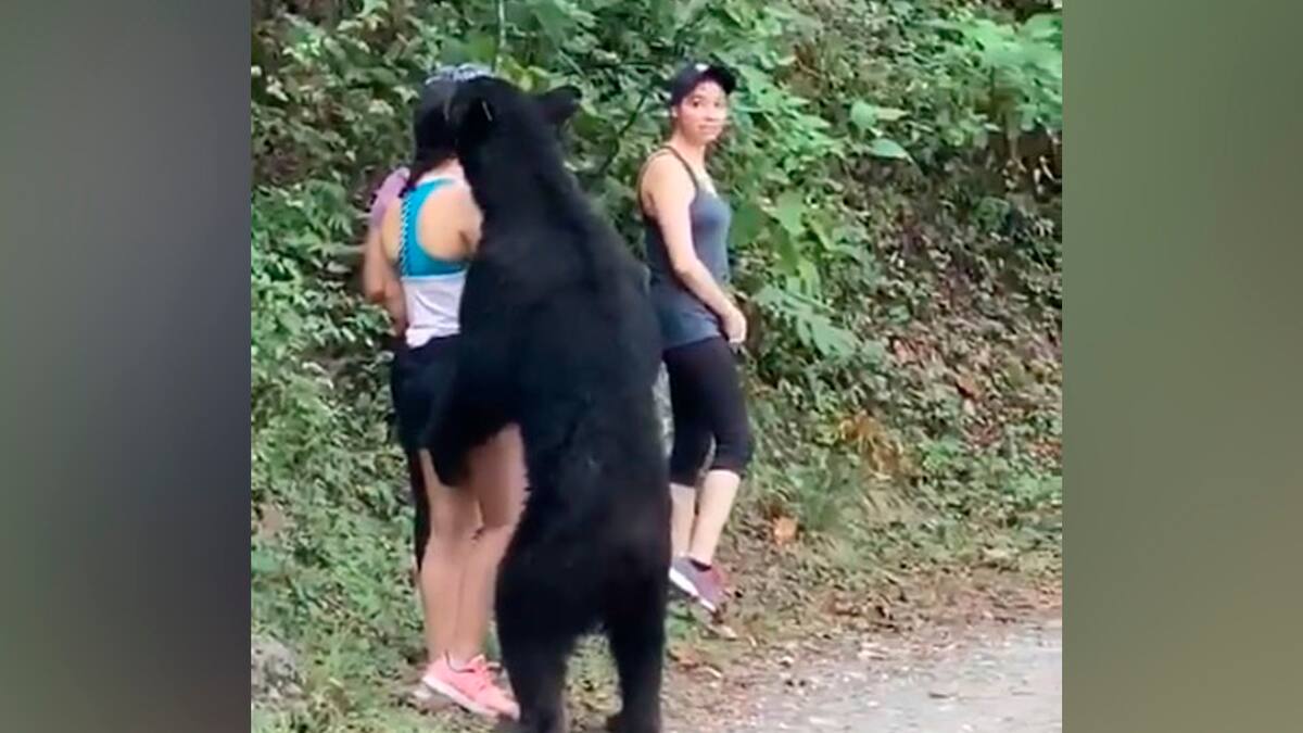 Las mujeres fueron sorprendidas por un oso negro que se acercó a ellas, por lo que estas optaron quedarse quitas para no inquietar al animal que de un momento a otro se paró en dos patas y abrazó a una de las asustadas mujeres, mientras que otros integrantes del grupo de visitantes les decían que no se movieran.