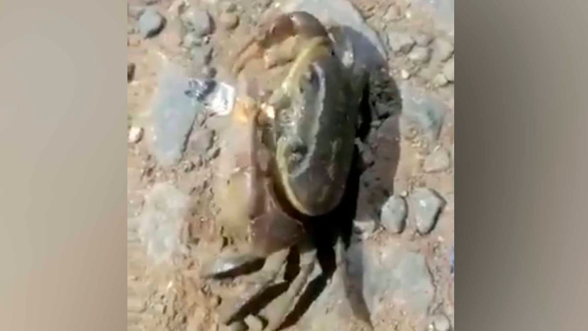Aunque parezca increíble es verdad. Un cangrejo quedó grabado en video en momentos en que se fumaba una colilla de cigarrillo que fue arrojada en una playa de la India.