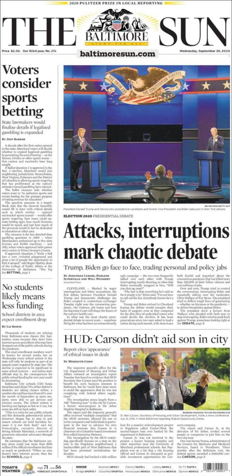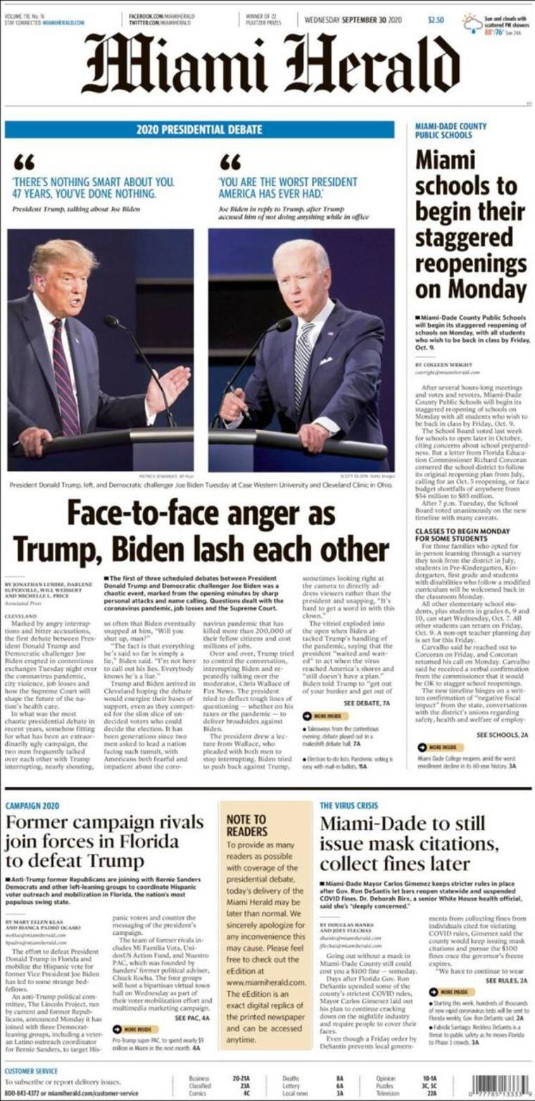 Un caótico debate presidencial llenó las portadas de los diferentes diarios estadounidenses en lo que fue el primer encuentro entre los candidatos.