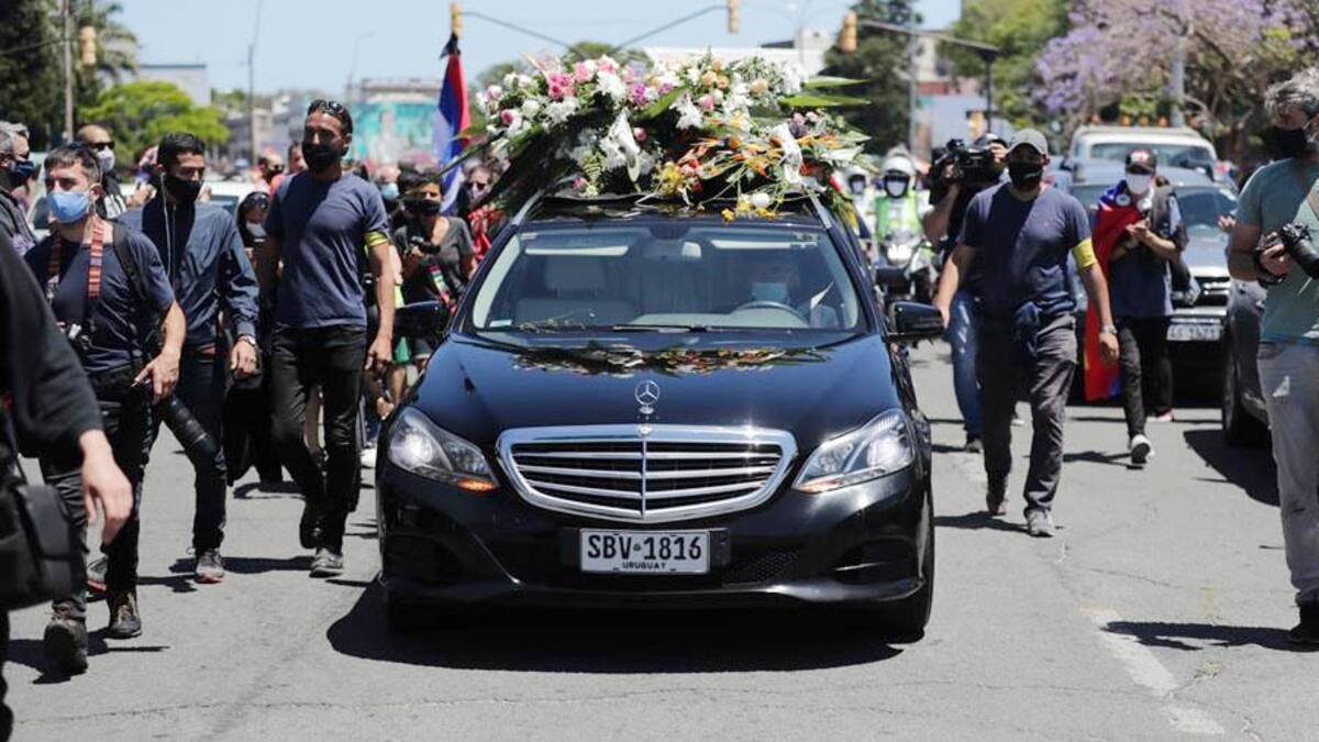 Una cadena humana separa la gente agolpada en las aceras del paso de vehículos en el camino hacia el Palacio Legislativo, de donde partirá hacia el cementerio de La Teja, su barrio natal y al que siempre estuvo apegado a nivel social y político.
