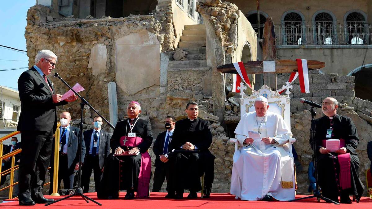 En la jornada de este domingo, el papa se trasladó a Mosul para rezar por las víctimas de las guerras entre los escombros de una ciudad devastada por los terroristas del Estado Islámico y a Qaraqosh, donde celebró el ángelus con la comunidad cristiana que ha ido regresando a la zona tras la derrota de los yihadistas.