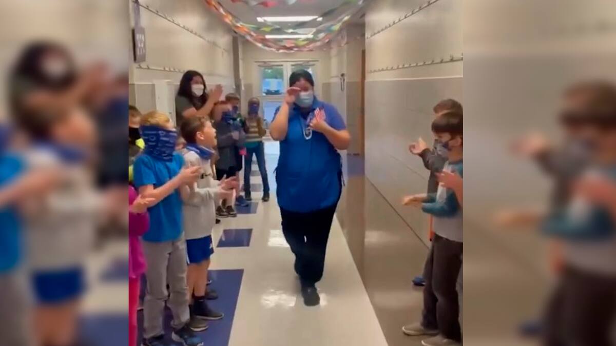 En el video se ve como los pequeños se juntaron en el pasillo para elogiar el logró de López.