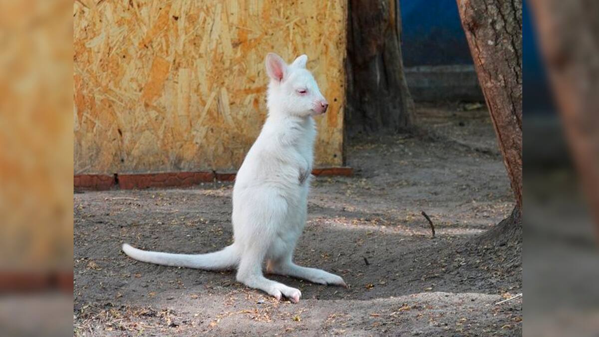 En el zoológico Regina ubicado en la ciudad rusa de Kazán, le dieron la bienvenida a un tierno canguro albino.