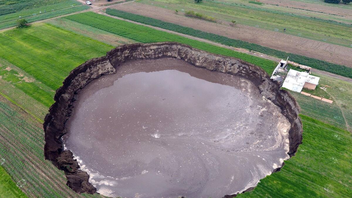 En Puebla un gran socavón se formó la semana pasada y se sigue extendiendo alcanzando ya algunas viviendas.