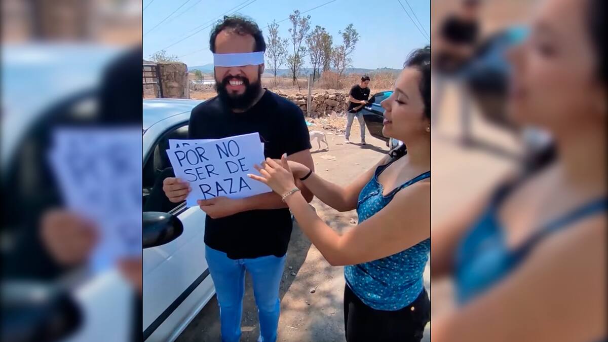 En la grabación puede verse como la novia y su amigo llevan al hombre con los ojos vendados a una carretera desolada para supuestamente darle una sorpresa, pero no es así.