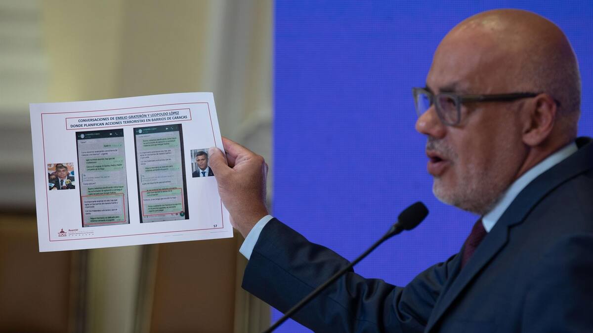 Además, Rodríguez mostró unas supuestas conversaciones por WhatsApp entre los opositores Leopoldo López, Emilio Graterón, Gilber Caro, Hasler Iglesias y Freddy Guevara.