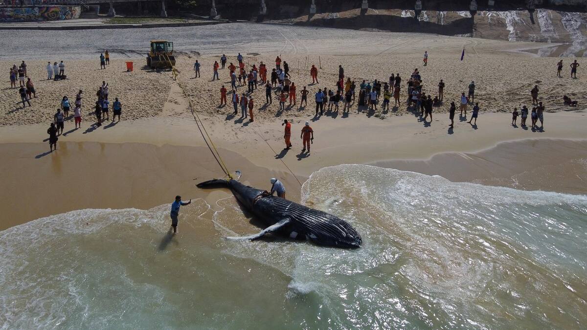 Una gigantesca ballena jorobada fue encontrada muerta este miércoles en las playas de un lujoso barrio residencial de Río de Janeiro, una situación que este año se ha repetido más de un centenar de veces en diversas playas de Brasil, marcando un nuevo récord en el país.