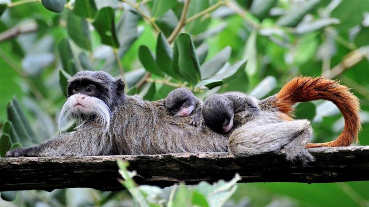 También llamado tamarino bigotudo por sus largos y vistosos bigotes blancos, es uno de los monos más pequeños y peculiares del mundo.