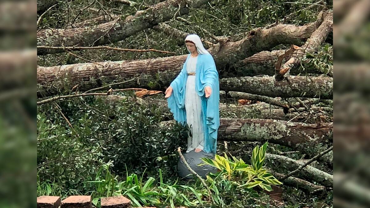 'En medio del daño de los árboles, Nuestra Señora se mantuvo como protección para nuestro pueblo de Garyville. Ni una rama la tocó mientras caían a su alrededor. Gracias Madre María por interceder por nosotros', dice la publicación en Facebook de la iglesia católica St.Hubert en Estados Unidos.