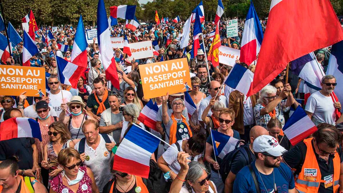 Por octava semana consecutiva decenas de miles de personas contrarias a la implantación del pase sanitario y a la vacunación obligatoria contra la covid volvieron a salir a las calles en numerosas ciudades francesas, en unas protestas que atrajeron a menos participantes que en las semanas precedentes.